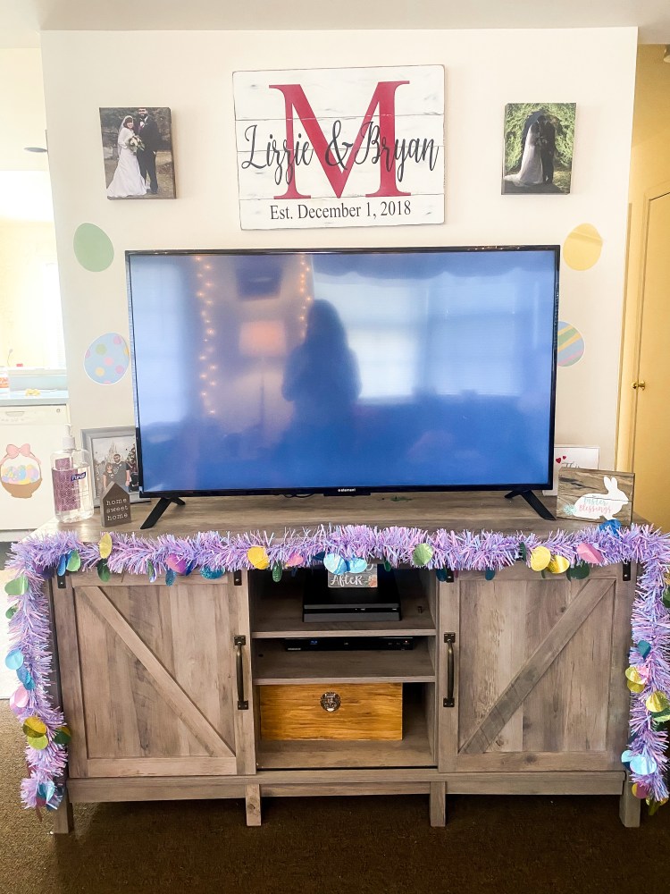 Once I finish the inside of a cabinet, I move to the outside. I get rid of any trash that has collected on top, anything that isn’t a decoration gets removed too. After that, it’s really up to you and what you like. I have found myself in a minimalist mood lately so I have downsized my decorations a lot. I know you probably can’t tell because there are still decorations, but for ME, it’s considered a downsize.