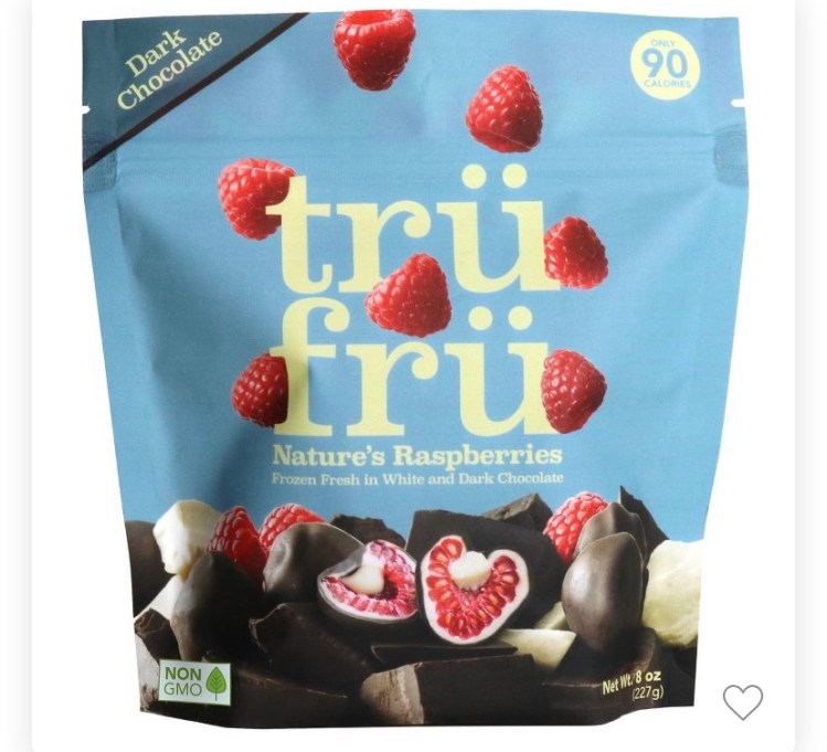 2. Tru Fru Hyper Chilled Chocolate Covered Raspberries: These you really need to get in the store. They are hard to find, but SO WORTH IT. This is my favorite cold treat. I actually hate raspberries, but for some reason these chocolate covered ones are the bomb. This is a newer company who you can find online. So far we have tried these and hyper dried chocolate covered coconut pieces. It’s 90 calories for 5 raspberries, so there is really no excuse not to try them. I will link them below, but you need to check your local Target, Harris Teeter, Walmart, or Krogger.