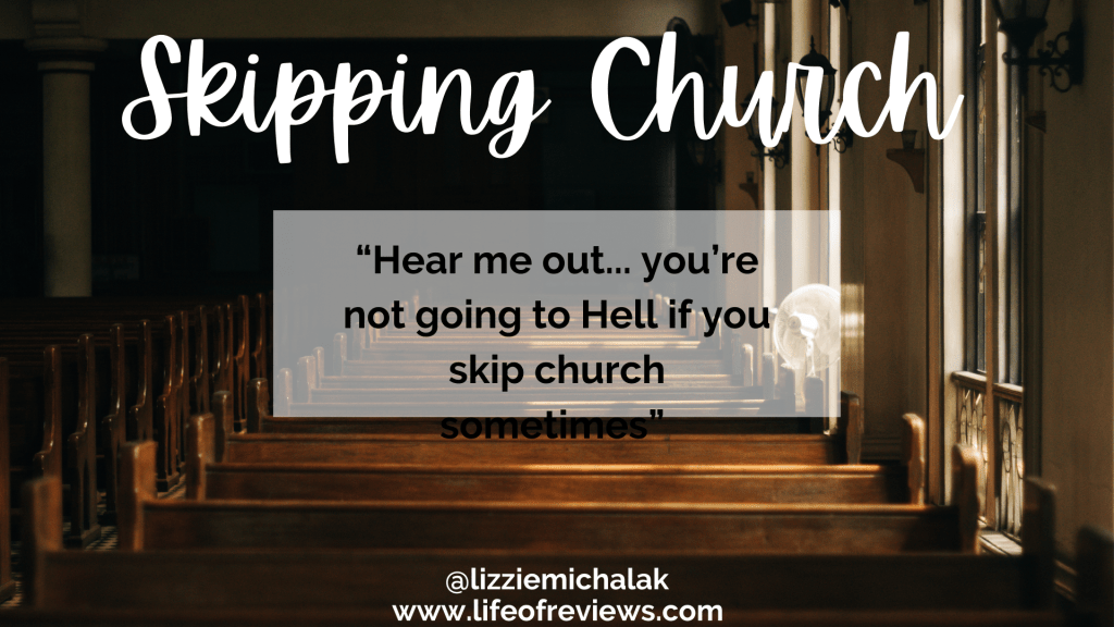 It’s okay to skip church sometimes. There, I said it. Now before you write this post off as an anti-church, anti-Christian piece, hear me out. Until October of 2019 I only skipped church ONCE a year. On the one day a year I skipped, I felt extremely guilty (usually we were on vacation). The rest of the year whether I was sick, or tired, or had 5,000 things to do, I went to church. I believed that being a “church skipper” (what I used to call people who missed even one Sunday service), was a reason to be sent to Hell (which, to clarify, has NO Biblical validity).