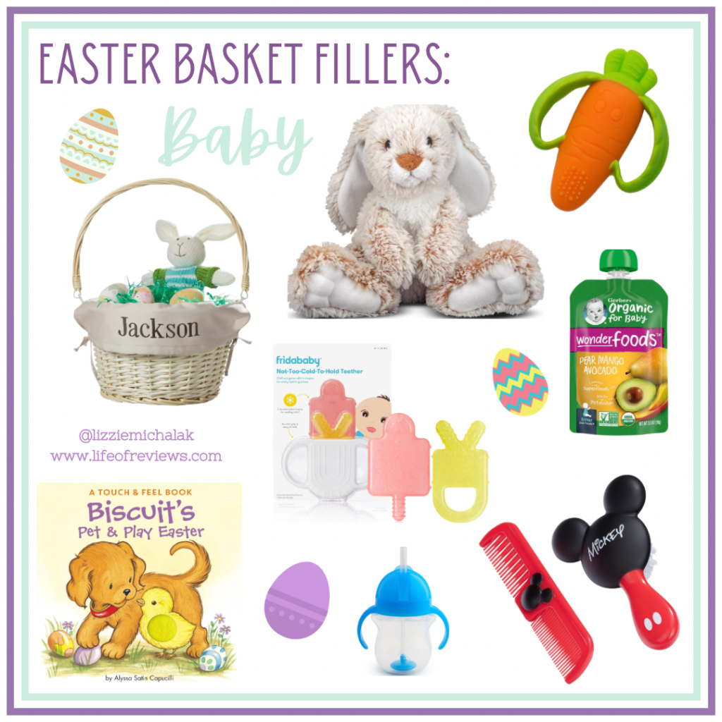 Baby Basket: Basket (so many options), Pouches, Carrot Teether, Frida Baby Teethers, Easter Teether, Easter Puppy Book, Sippy Cup, Bunny, Hair Brush Set