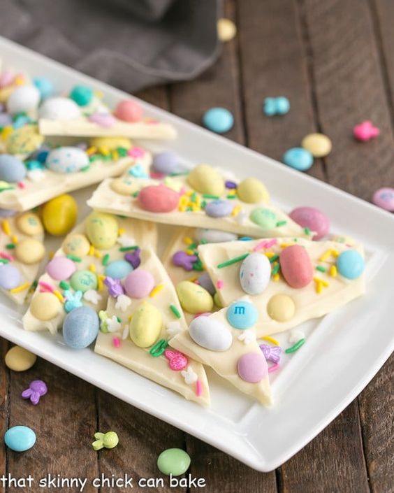Easter Bark: This is usually a fan favorite at Christmas, but I found this one for Easter and it’s so cute. I think, as a milk chocolate lover, that it would also be cute with milk chocolate. You can choose which way you want to do this.