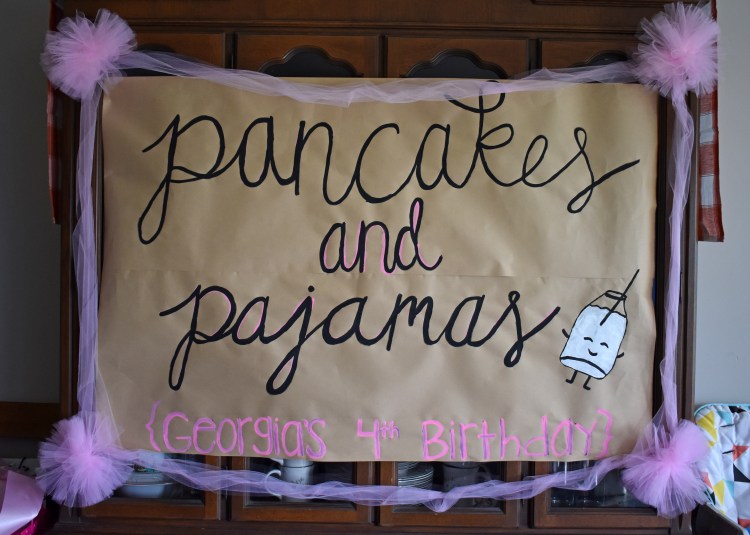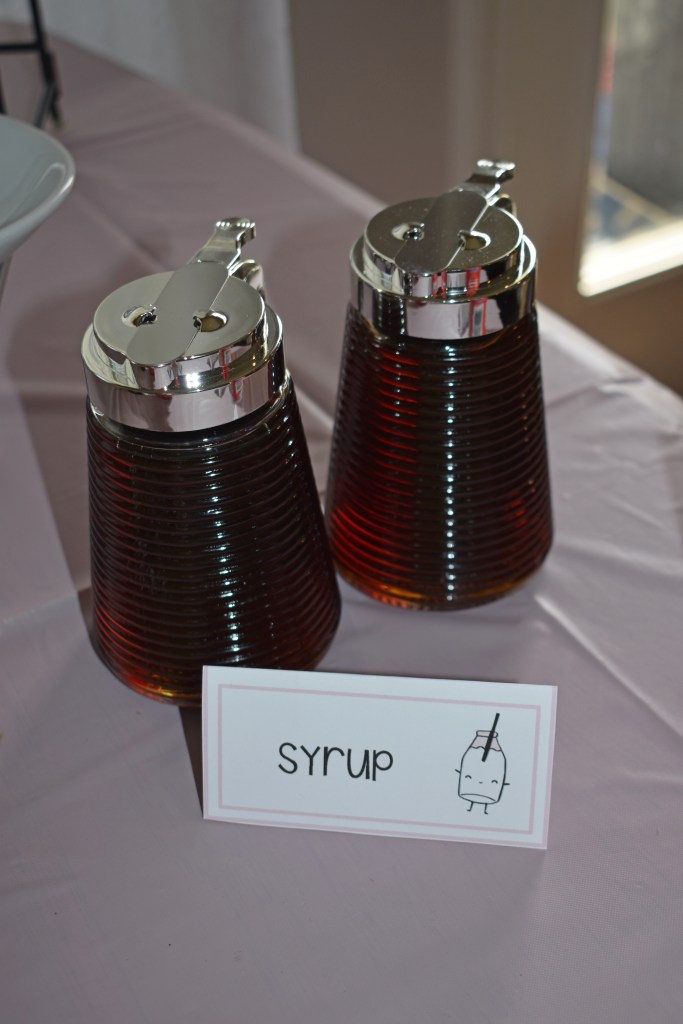 Food: I made things really simple, but it turned out so cute and even the adults had a lot of fun. I wish I had taken more pictures of the pancakes that everyone made, but I was too busy enjoying the party. All of these were taken before it started (which is the only reason there are pictures).