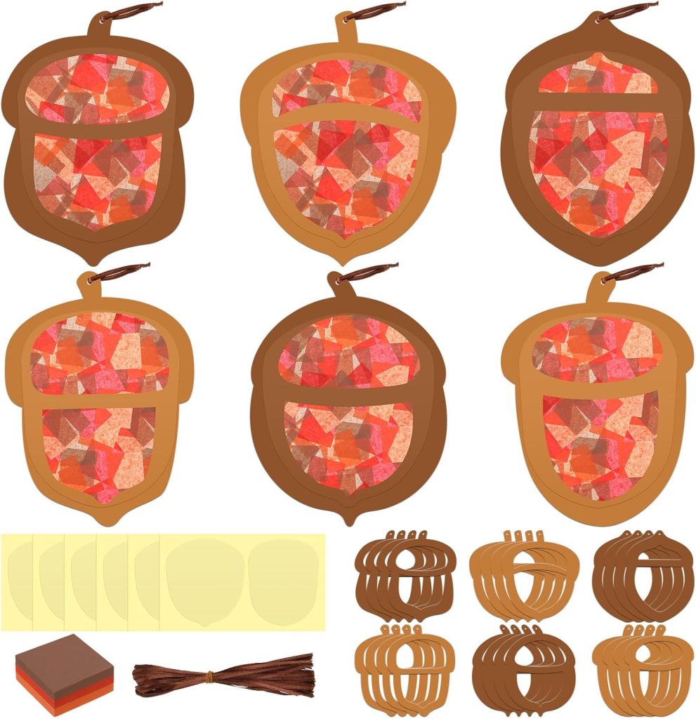 Acorn Stained Glass Craft: (buy kit here): I’ve done this crafts a few different ways during different seasons and a kit is definitely the way to go. We still have one of these hanging in our house.