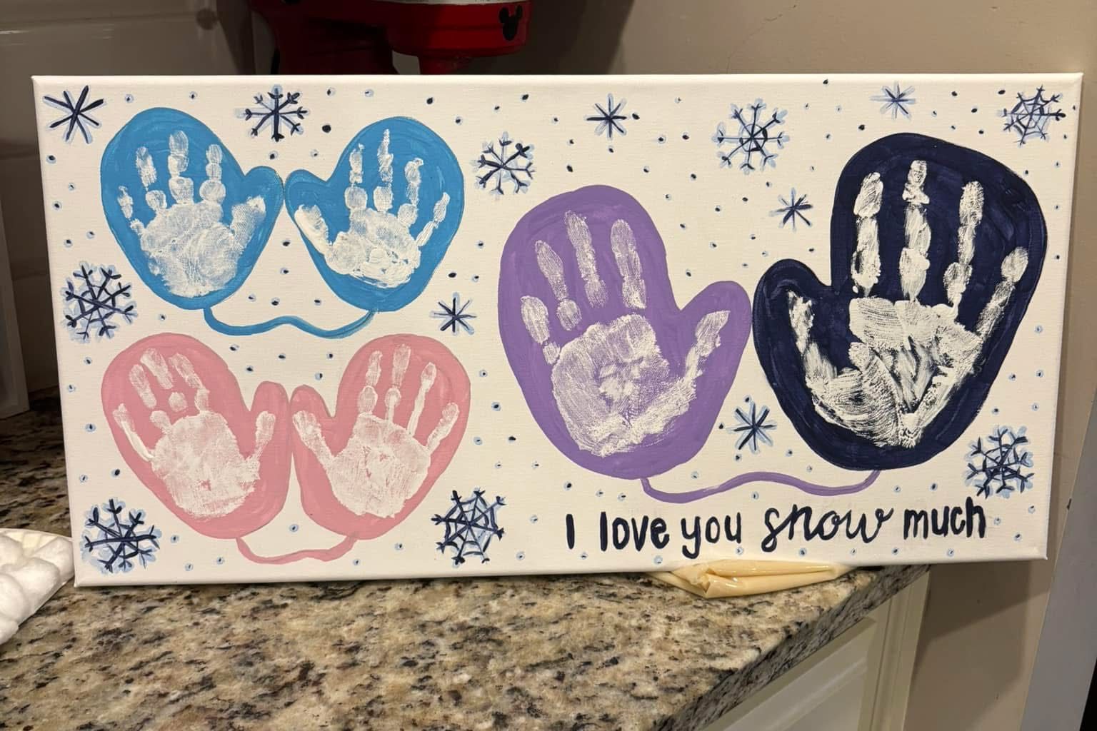 I Love You Snow Much, Hand Print Craft: It snowed for the first time in a very long time here last year and it was a record snow fall, so we memorialized the day in a craft. It was so fun.